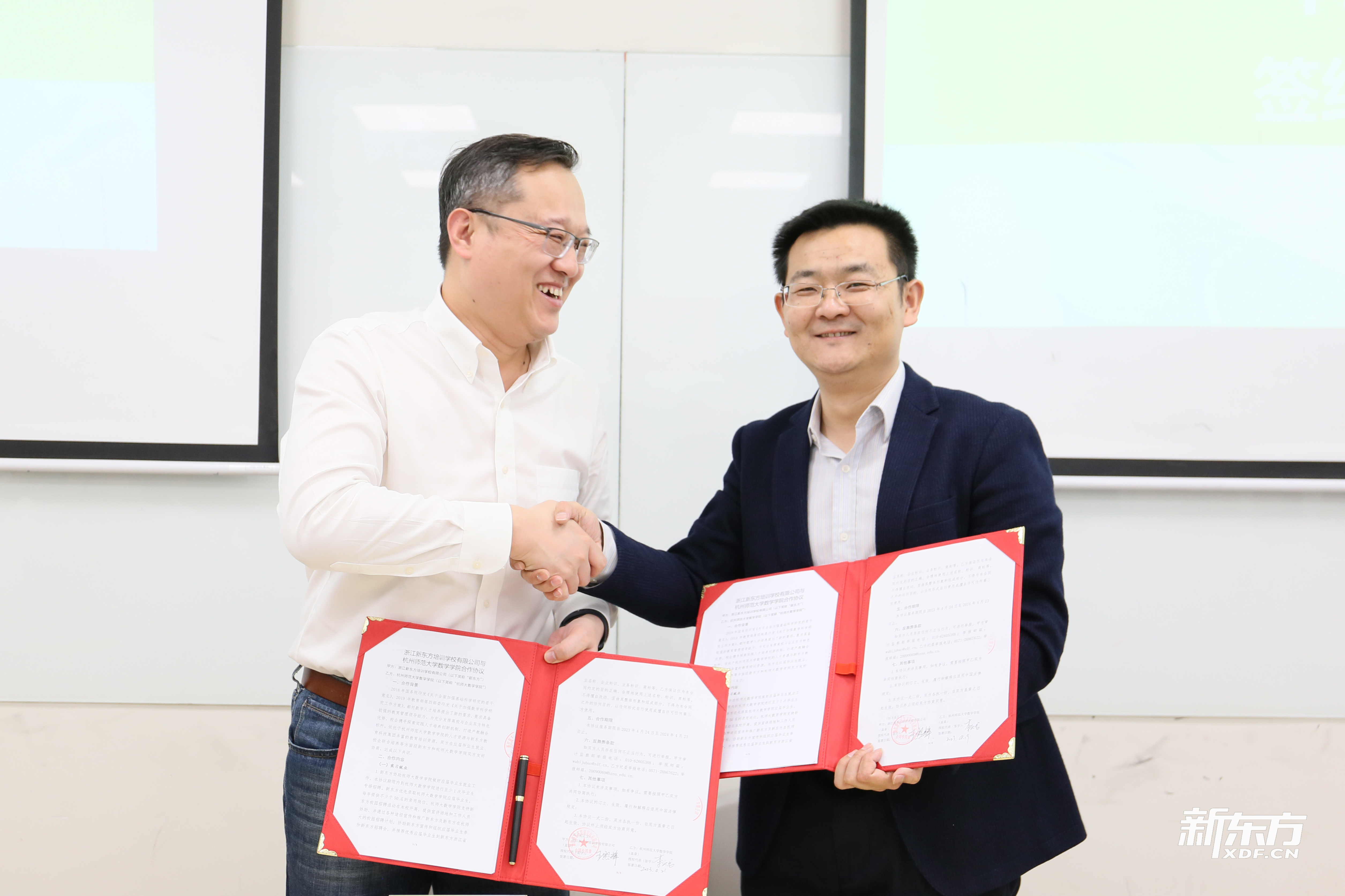 在工作人员的带领下,师生共同参观了浙江新东方耀江校区。在签约仪式上,徐书记希望通过本次校企合作,同学们能够练就扎实的教书育人的基本功,全面提升个人技能,学有所成,早日成为更好的自己。浙江新东方校长助理兼人力资源总监王照辉老师和浙江新东方相关部门的负责人也进行了精彩的发言。