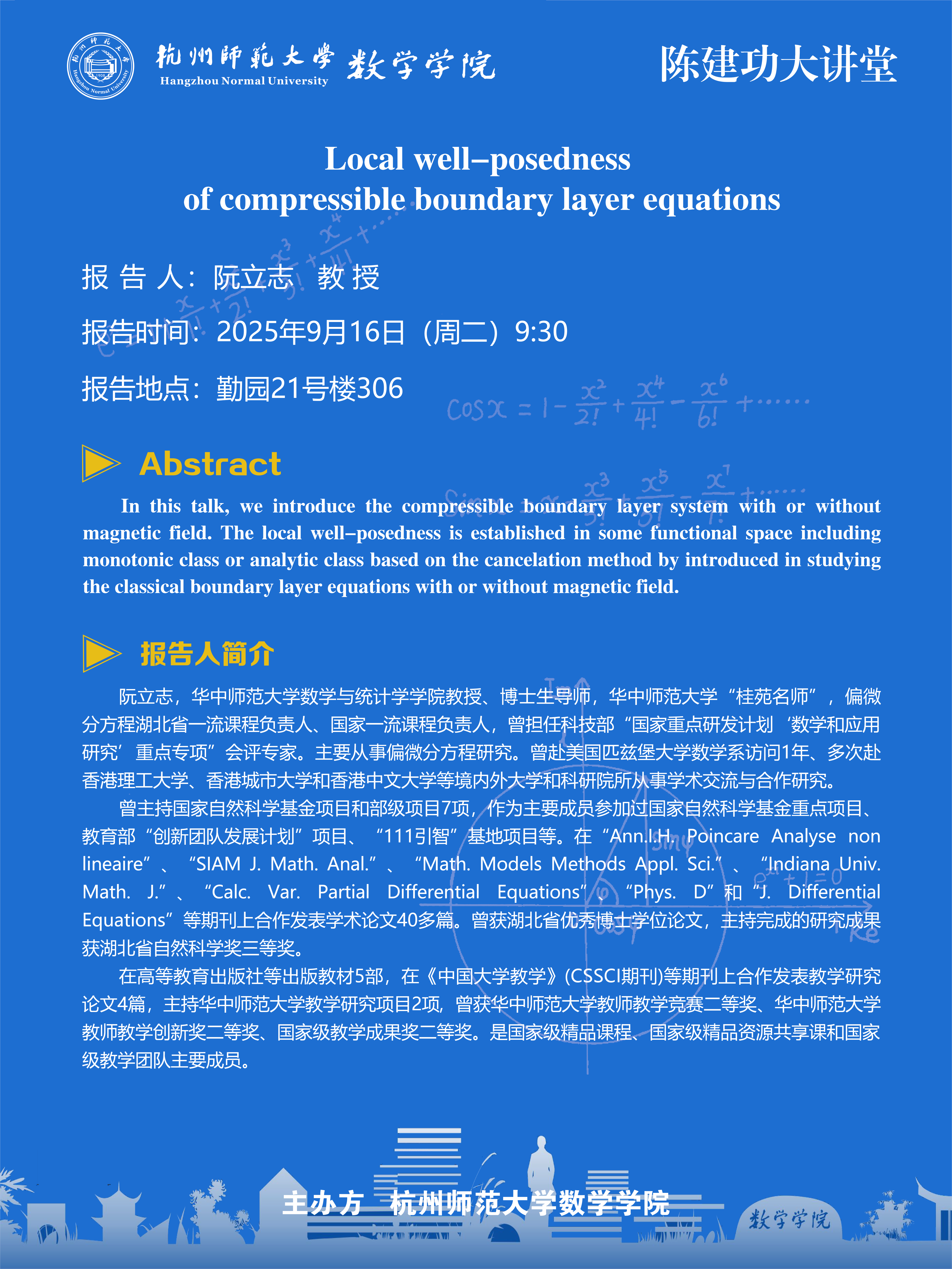 陈建功大讲堂(2025-66):Local well-posedness of compressible boundary layer equations