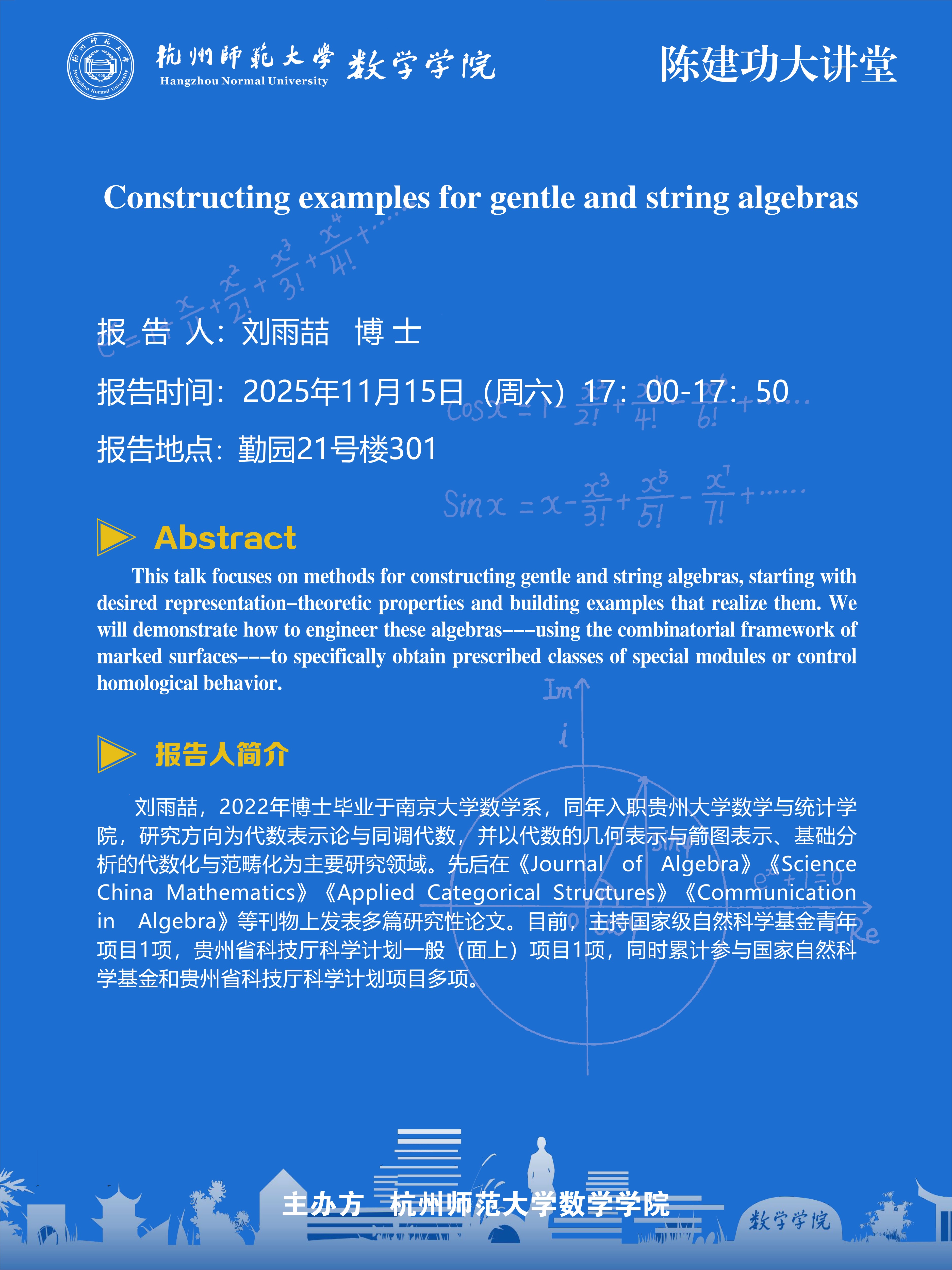 陈建功大讲堂(2025-128):Constructing examples for gentle and string algebras